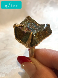 リング レインボーハイライトはロシアでとれる和名黄鉄鉱この石はデザイナー島田節子の石のコレクションから選び石を活かしたデザインにしました光の加減で石が七色に輝きますヘビーユーザーのお客様普通なものでは満足されません普段のラフなお洋服にピッタリです パーソナルジュエリー診断はこちら