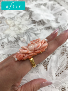 お母様の帯留をペンダントに直しましたが、どうしても指輪にしたいとご依頼
